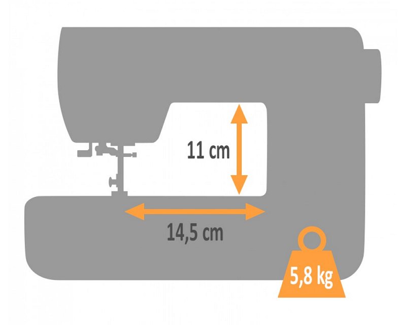 | Vzdálenost mezi jehlou a frémou (cm) | 14,5 |