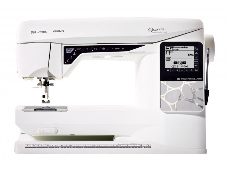 Šicí stroj Husqvarna Viking Opal 690 Q je moderní elektronický šicí stroj, který má přehledný dotykový displej, praktický odstřih horní a spodní nitě a velký prostor mezi jehlou a tělem stroje - poradí si s prošíváním velkých patchworkových dek a quiltování. Prostor mezi jehlou a tělem stroje je 20 cm, šicí stroj má horizontální rotační chapač, kdy se spodní cívka nasazuje lehce shora, stroj se lehce čistí a při šití má tichý chod. V nabídce má 565 programů včetně ozdobných v šíři až 7mm a 4 druhy abecedy. Šicí stroj má SENSOR SYSTEM - rovnoměrné podávání šitého materiálu a také SEWING ADVISOR - poradce při šití - kde zobrazuje vhodné nastavení pro zvolený steh.