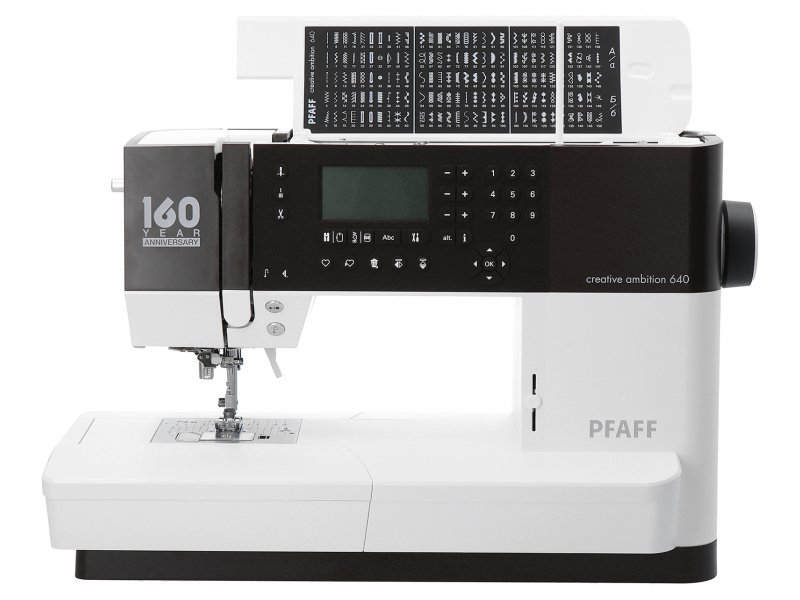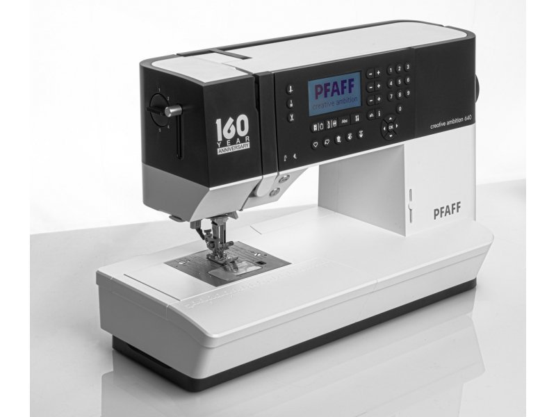 Stroj Pfaff Creative Ambition 640 je kombinací šicího, vyšívacího a quiltovacího stroje s velikostí vyšívací plochy 240 x 150 mm a bonusovou sadou 5 patek. Tento stroj je jedinečný oproti jiným značkám zabudovaným systémem horního podávání IDT, který je vhodný pro šití více vrstev, lehkých, kluzkých a těžkých materiálů. Tento velmi bohatě vybavený stroj nabízí 450 šicích programů, 150 typů stehů, 2 typy abecedy, 101 originálních vyšívacích vzorů Pfaff a automatický odstřih nitě. Součástí je program, který umožňuje upravovat výšivky a vytvářet písma ve vašem PC s následným uložením do paměti stroje. Vzory i stehy lze jednoduše otáčet v krocích i po 1 stupni. Součástí stroje je vyšívací agregát. Jedná se o přídavnou část, která rozšíří pracovní plochu, umožní uchycení vyšívacího rámečku i vyšívání. Bez vyšívacího agregátu na stroji nelze vyšívat, pouze šít jako na klasickém šicím stroji. Stroj má české ovládání a český návod.