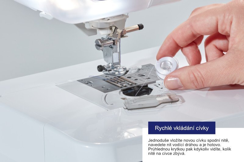 - nezávislé cívkování - navíjet cívky spodní nitě můžete i během vyšívání
