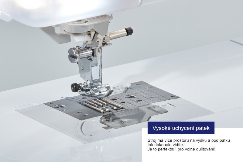Prostor 28,5 cm od jehly k tělu stroje vás prostě dostane - už nebudete mít problém s quiltováním velkých dek, vyšíváním obrovských ubrusů nebo bund. Stellaire má stejně jako řada V více prostoru i na výšku - má vysoké uchycení patek a prostor pod ramenem je opravdu velkorysý.