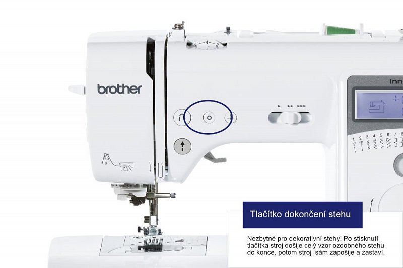Možnost zapošívání uprostřed šití pomocí tlačítka na hlavě stroje.