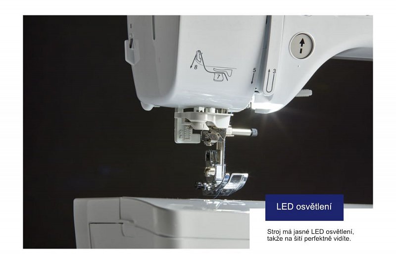 Šicí stroj určený pro začátečníky i pokročilé - má rychlou a jednoduchou obsluhu, umí sám navlékat nit do jehly, (na to si rychle zvyknete!), je robustní, prošije vysoké vrstvy materiálu, díky elektronice umí automaticky zapošívat, může šít rychle i naprosto pomaličku krokem a doporučí vám, jakou patku pro daný steh zvolit.