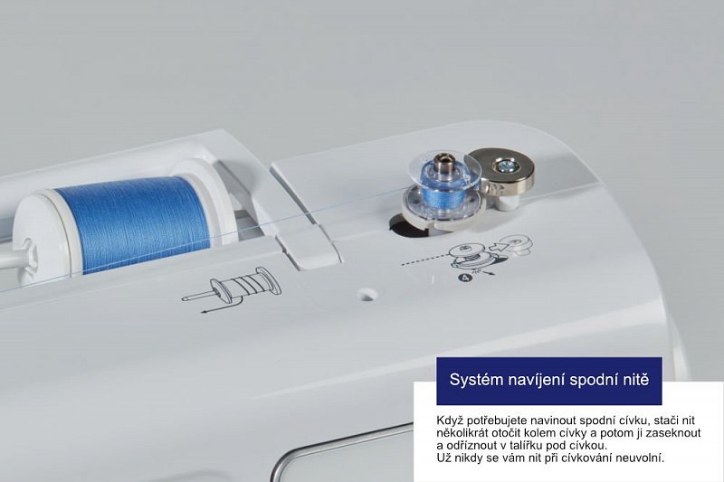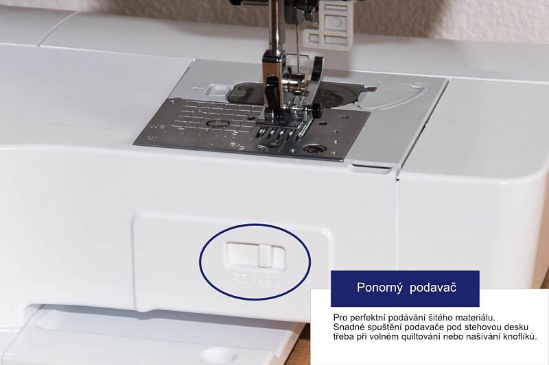 na hlavě stroje. Samozřejmostí je možnost zpětného šití.