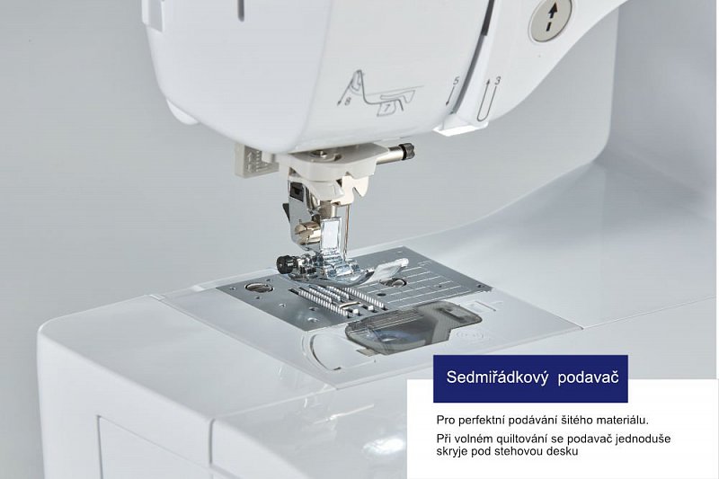 Sedmiřádkový podavač pro perfektní podávání šitého