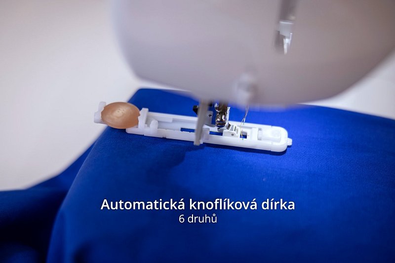 - 6 druhů automatické knoflíkové dírky včetně konfekční