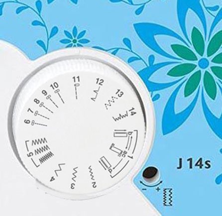 - 14 druhů stehů: rovné stehy v různých délkách, několik cik-caků, trojitý pružný cikcak steh