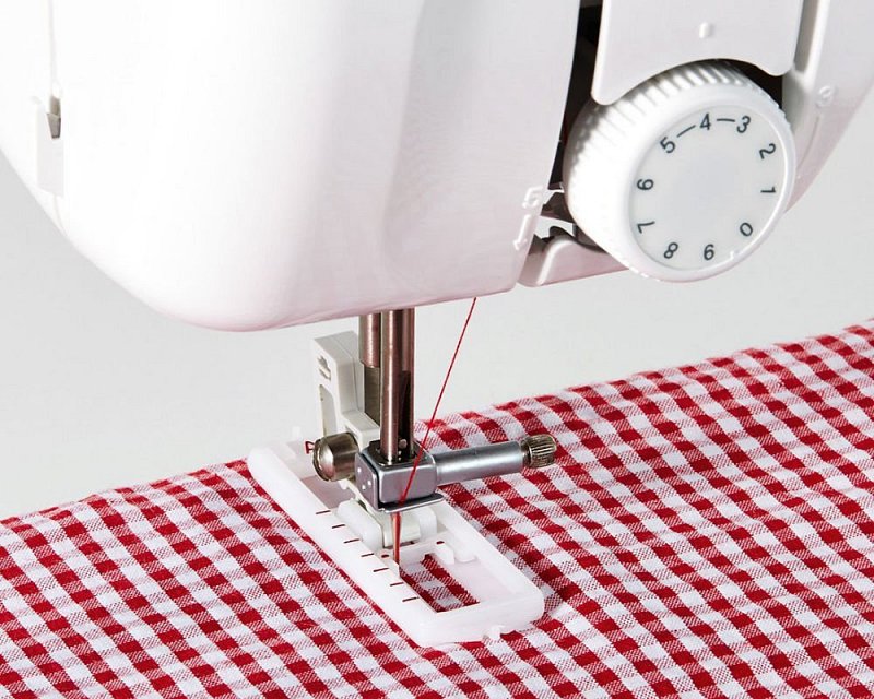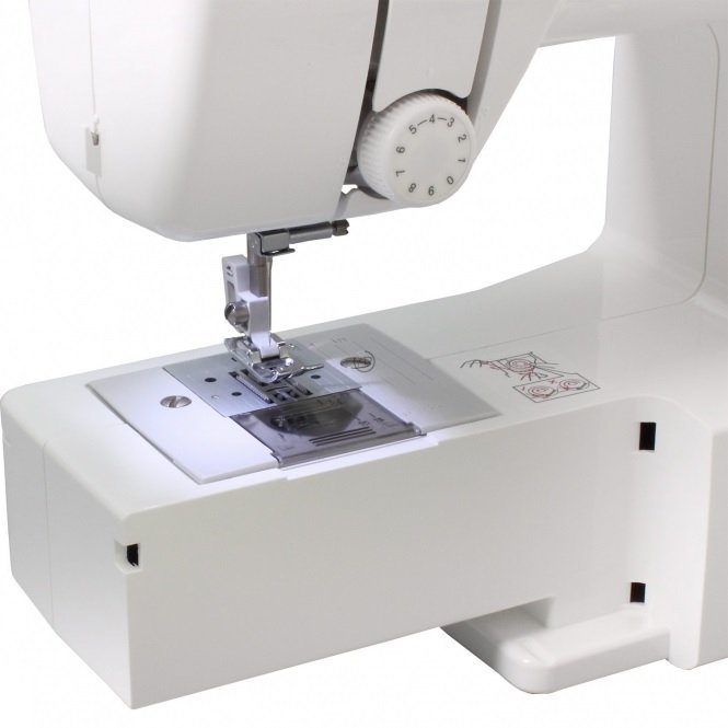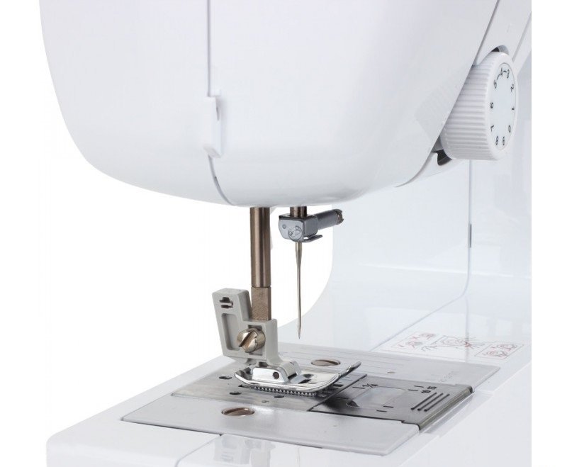 Jednoduchý mechanický šicí stroj s celokovovou vnitřní konstrukcí. Vybavený 14 programy, 4-krokovou knoflíkovou dírkou, LED osvětlením, volným ramenem.